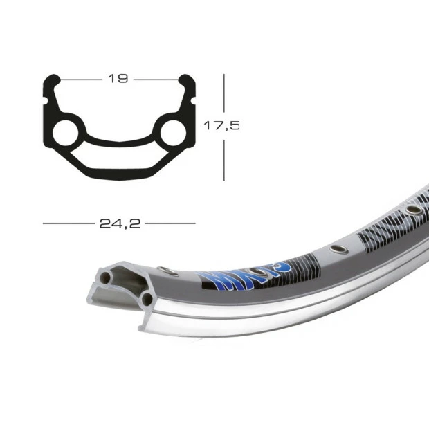 La jante Exal MX 19 vous permettra de remplacer la vôtre, cassée ou usée par les kilomètres. Fabriquée en aluminium et possédant une double paroi, elle est à la fois robuste et légère. Les œillets sur les trous des rayons augmentent la solidité de la jante. Elle possède un trou de valve de 8,5 mm de diamètre permettant le passage d’une valve Schrader.