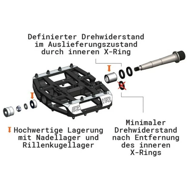 Si vous retirez le pied de la pédale, celle-ci ne tournera pas, vous évitant le désagrément d’une pédale verticale. Si vous voulez le maximum d’efficacité d’une pédale très légèrement rotative, il vous suffit de retirer rapidement et facilement l’anneau de résistance intégré. Dotées d’un axe en Cr-Mo, ces pédales sont à la fois résistantes et légères.